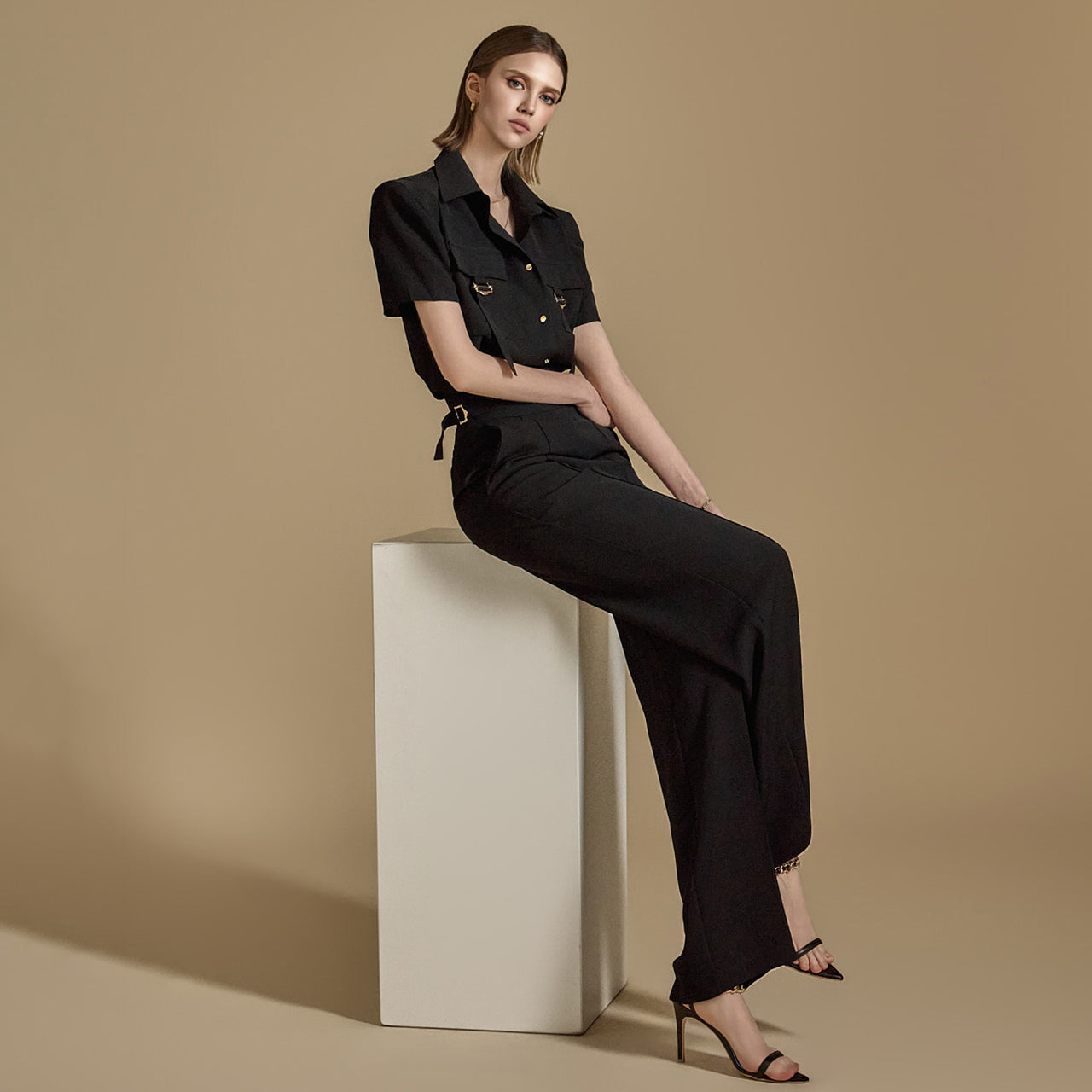 The half-sleeve length makes it easy for everyday styling without any burden, and the front gold buckle detail adds a refined touch.